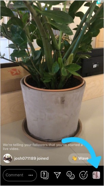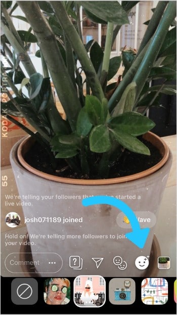 Pour inviter quelqu’un à participer en direct au Live Instagram appuyez sur l’icône des visages.
